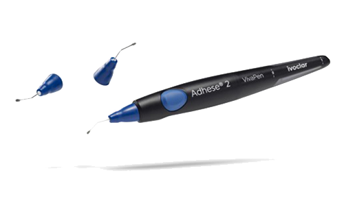 Universal adhesive som kombinerar dual- och ljushärdning i en och samma produkt. En-komponents adhesiv med enkel applicering med "Click & Bond" i smidig VivaPen. Adhese 2 kan förutom ljushärdning tillsammans med den innovativa blå DC snap-on kanylen möjliggöra applicering av dualhärdande adhesive via VivaPen - ingen extra aktivator behövs. Förutom ljushärdning ger kanylens co-iniatorbeläggning kemisk härdning med dualhärdande komposit och cement. Lämplig för både direkta och indirekta restaurationer.
