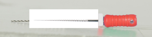 Steril rotkanalsfil enligt Hedström av rostfritt stål med filstopp och färgkodat skaft.
