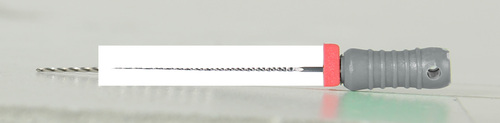 Steril K-fil av rostfritt stål med filstopp och färgkodat plastskaft.