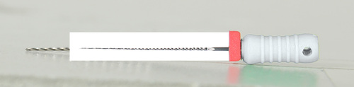 Steril K-fil av rostfritt stål med filstopp och färgkodat plastskaft.