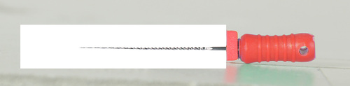Steril K-fil av rostfritt stål med filstopp och färgkodat plastskaft.