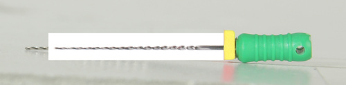 Steril rotkanalsfil av rostfritt stål med filstopp och färgkodat skaft.