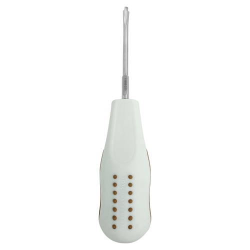 Extraktionsinstrument - luxationshävel med ett ergonomiskt vitt skaft utformad för luxation och sondering.