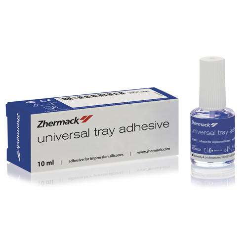 Blått universal Tray Adhesive är ett specifikt lim för A-silikoner, som är ett lim utformat för att säkerställa vidhäftning av additionssilikon till standardmetalliska avtrycksskedar och individuella avtrycksskedar.