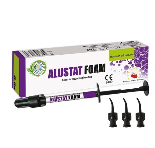 Cerkamed Alustat Foam är ett hemostatiskt skum utvecklat för att stoppa lätta gingivala blödningar och samtidigt minska gingival svullnad genom en vasokonstriktiv effekt från aluminiumklorid.