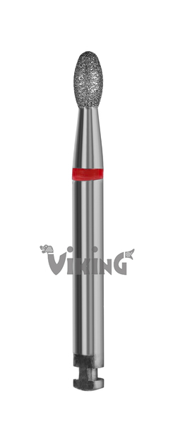 Äggformad putsdiamant med vinkelstyckefattning. Fin (röd ring). Storlek 023. ISO: 806204277514023.