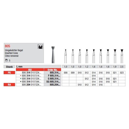 Diamant 805/009 FG omvänd konisk medium, 5 st