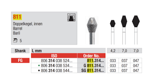 Dubbelt konformad preparationsdiamant för ocklusal reduktion med FG-fattning.