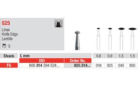 Linsformad preparationsdiamant med skarp kant och FG-fattning.