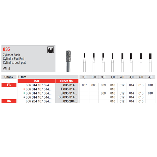 Diamant 835/010 FG cylinder rak topp medium, 5 st