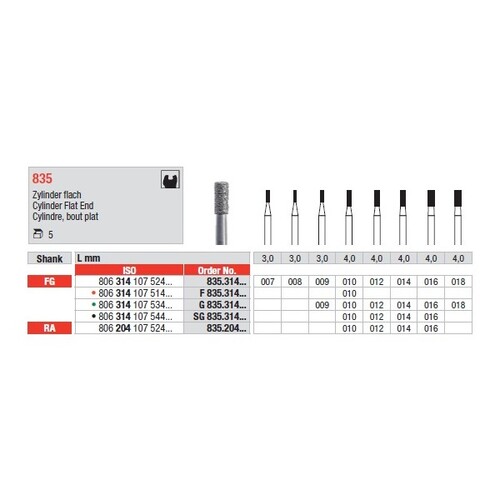 Diamant 835/014 RA cylinder rak topp medium, 6 st