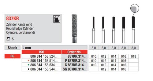Diamant 837KR/014 FG cylinder rund kant medium, 5 st