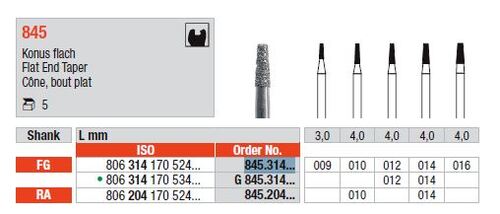Diamant 845/010 FG konisk rak topp medium, 5 st