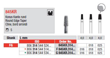 Diamant 845KR/016 FG konisk rund kant fin röd, 5 st