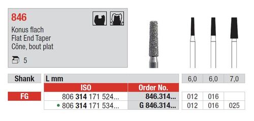 Diamant 846/012 FG konisk rak topp grov grön, 5 st