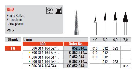 Diamant 852/010 FG konisk spetsig medium, 5 st