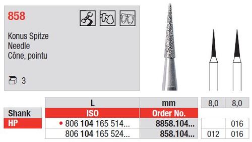 Diamant 858/016 HP konisk spetsig medium, 3 st