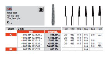 Diamant 848/012 FG konisk rak topp x-fin gul, 5 st