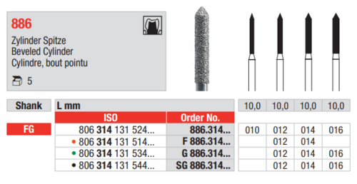 Diamant 886/012 FG cylinder spetsig medium