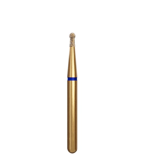 Rund guldfärgad preparationsdiamant med belagd hals och FG-fattning.