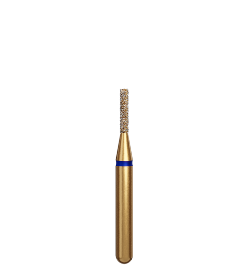Cylinderformad med rak topp guldfärgad preparationsdiamant med kort skaft och FG-fattning.