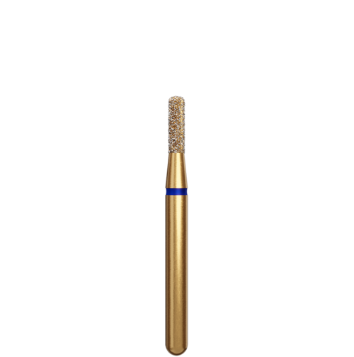 Cylinderformad guldfärgad preparationsdiamant med rundad kant och FG-fattning.