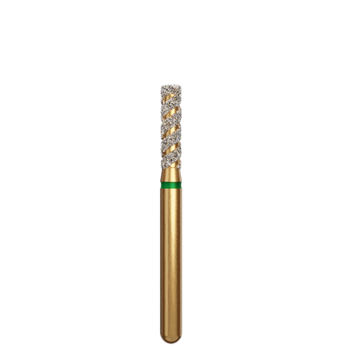 Cylinderformad med rak topp guldfärgad preparationsdiamant med FG-fattning.