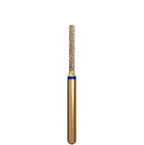 Cylinderformad med rak topp guldfärgad preparationsdiamant med FG-fattning.