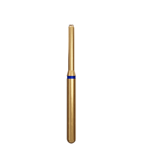 Guldfärgad cylinderformad borr för end cutting med diamant på toppen och FG-fattning.