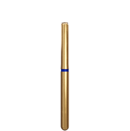 Guldfärgad cylinderformad borr för end cutting med diamant på toppen och FG-fattning.