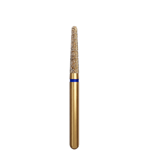 Konisk guldfärgad preparationsdiamant med rundad topp och FG-fattning.