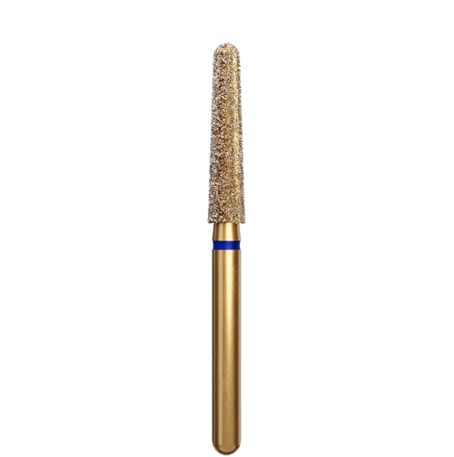 Konisk guldfärgad preparationsdiamant med rundad topp och FG-fattning.