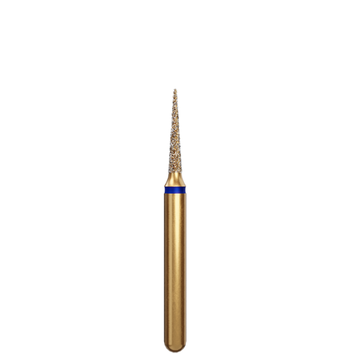 Konisk spetsig (nålformad) guldfärgad preparationsdiamant med FG-fattning.