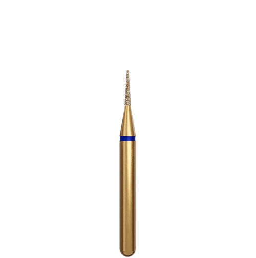 Konisk spetsig (nålformad) guldfärgad preparationsdiamant med FG-fattning.