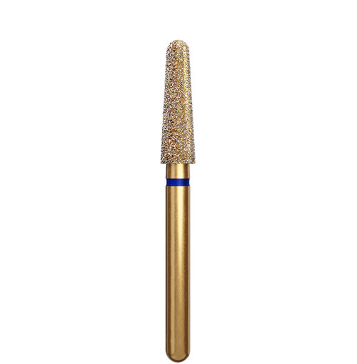 Konisk guldfärgad preparationsdiamant med rundad topp och FG-fattning.