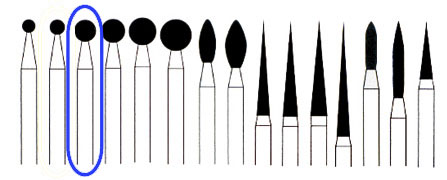 Rund preparationsdiamant med längre skaft och FG-fattning. Skaft: 25 mm. Kornstorlek: Medium. Storlek 016.