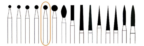 Rund preparationsdiamant med vinkelstyckefattning. Kornstorlek: Medium. Storlek 021. ISO: 806204001524021.