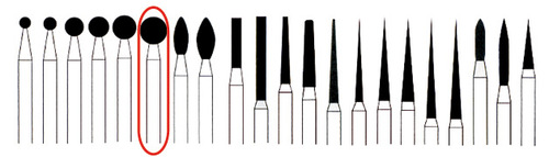 Rund putsdiamant med FG-fattning. Kornstorlek: Fin. Storlek 033. ISO: 806314001514033.