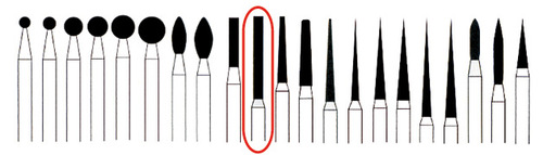 Cylinderformad putsdiamant med rak topp och lång arbetsdel, FG-fattning. Kornstorlek: Fin. Storlek 012.