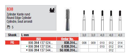 Diamant 838/012 FG cylinder rund topp grov grön, 5 st