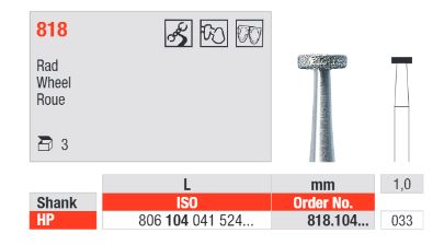 Hjulformad preparationsdiamant med handstyckefattning (HP).