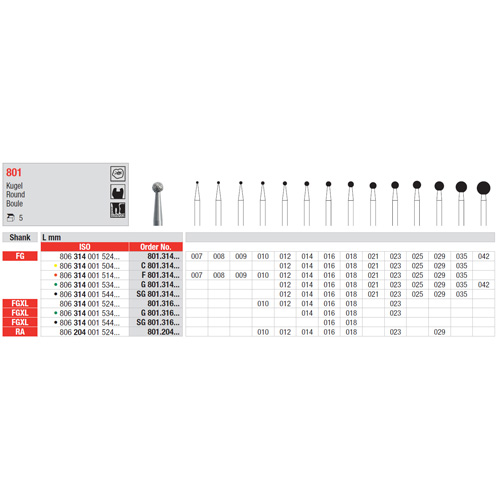 Diamant 801/014 FG rund fin röd, 5 st