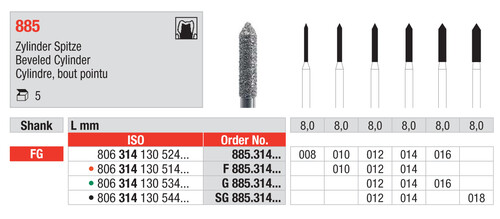 Diamant 885/014 FG cylinder spetsig fin röd, 5 st