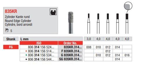 Cylinderformad preparationsdiamant med rak topp och rundad kant, FG-fattning.