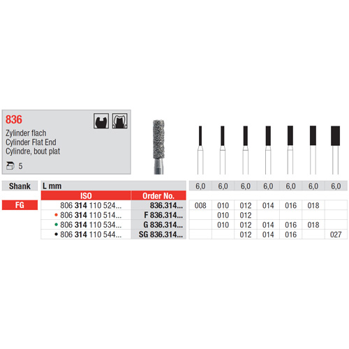 Diamant 836/010 FG cylinder rak topp grov grön, 5 st