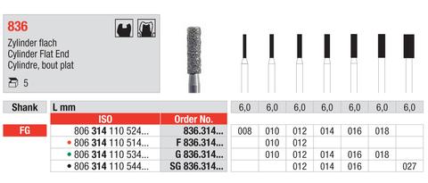 Diamant 836/012 FG cylinder rak topp grov grön, 5 st