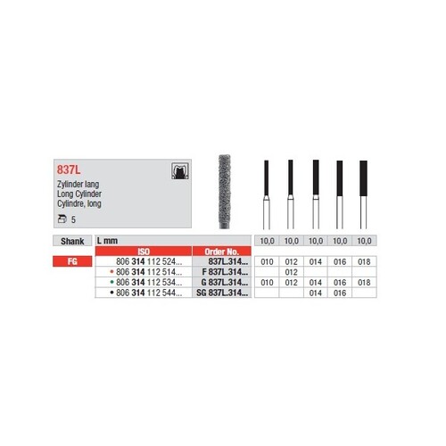 Diamant 837L/014 FG lång cylinder rak grov grön, 5 st