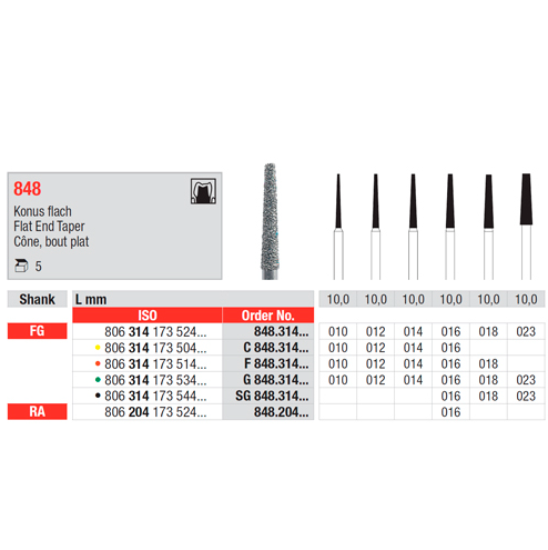 Diamant 848/010 FG konisk rak topp grov grön, 5 st