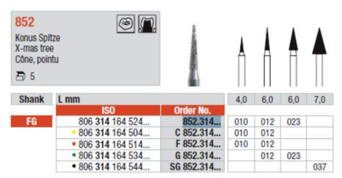 Konisk spetsig (julgrans formad) preparationsdiamant med FG-fattning.