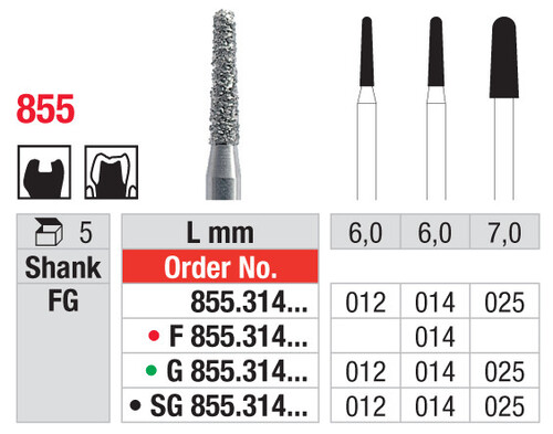 Diamant 855/025 FG konisk rund topp grov grön, 5 st